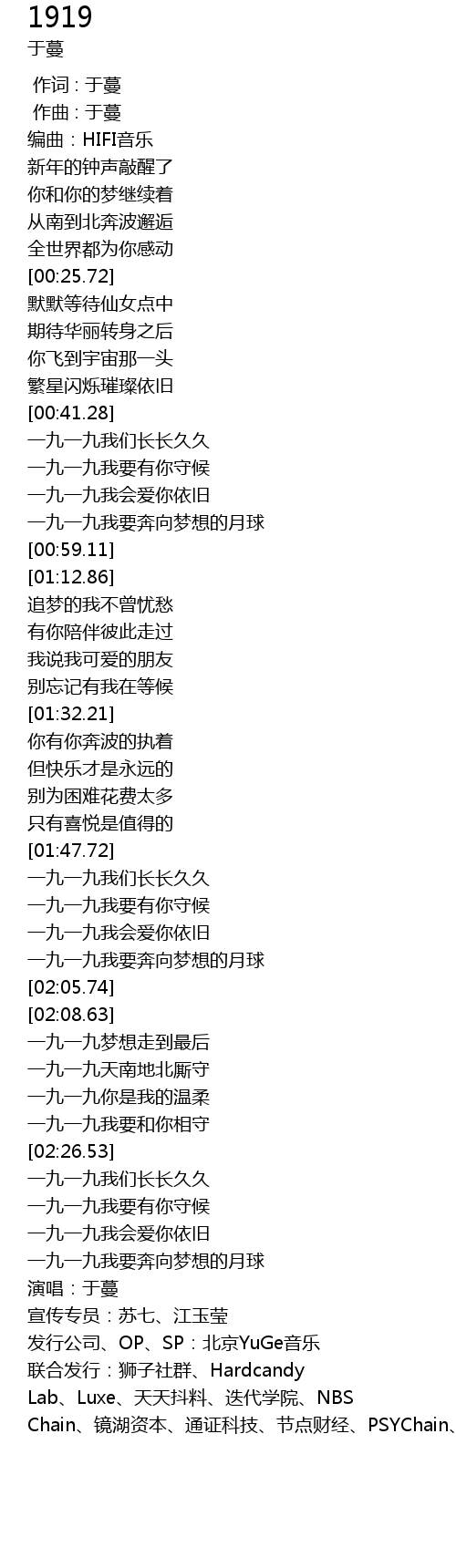 | [01:56.26] | 一九一九我会爱你依旧 |