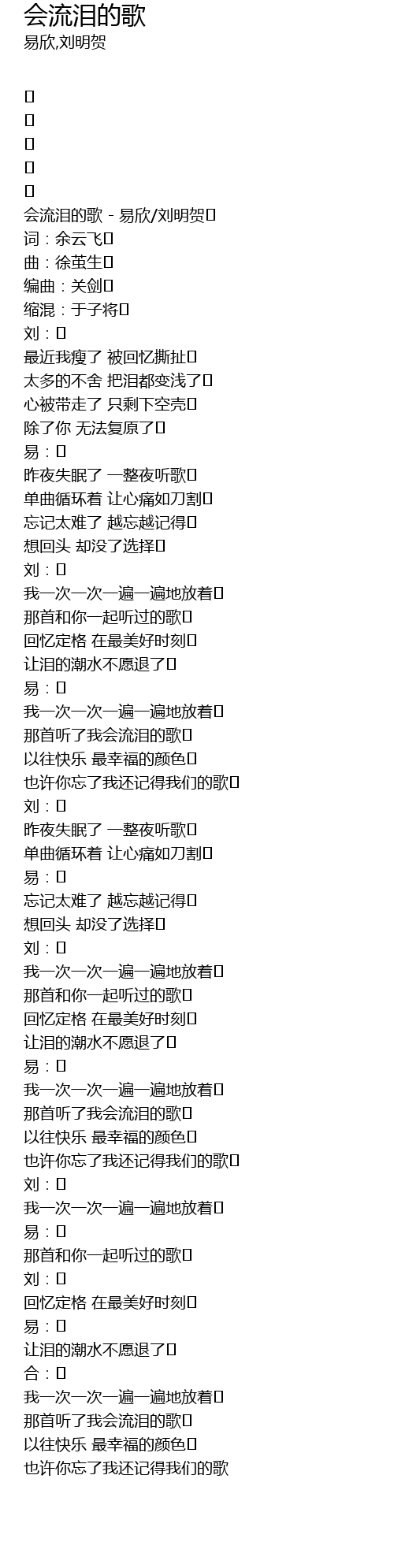 | 会流泪的歌 - 易欣/刘明贺 | |