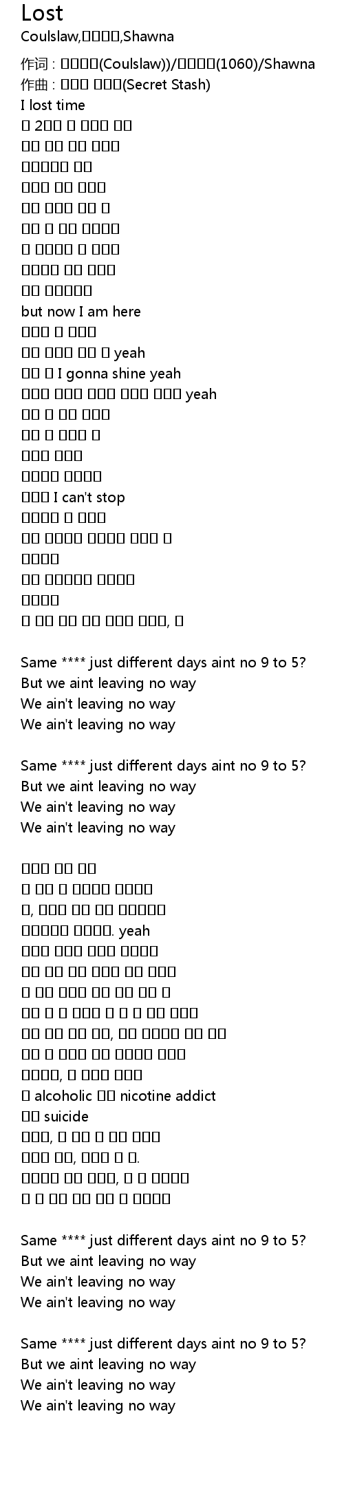 | 作词 : 코울슬로(Coulslaw))/일공육공(1060)/Shawna | |