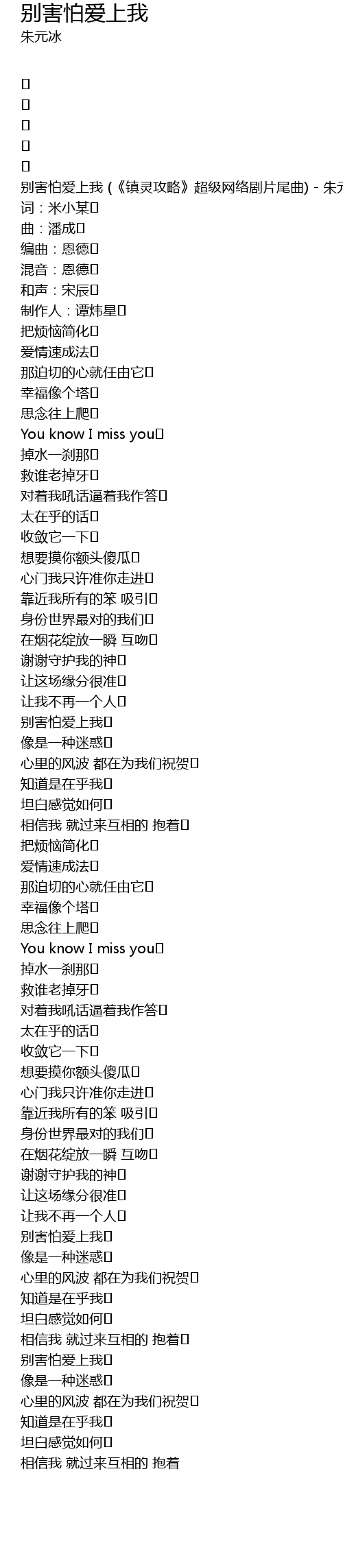 | 别害怕爱上我 (《镇灵攻略》超级网络剧片尾曲) - 朱元冰 | |