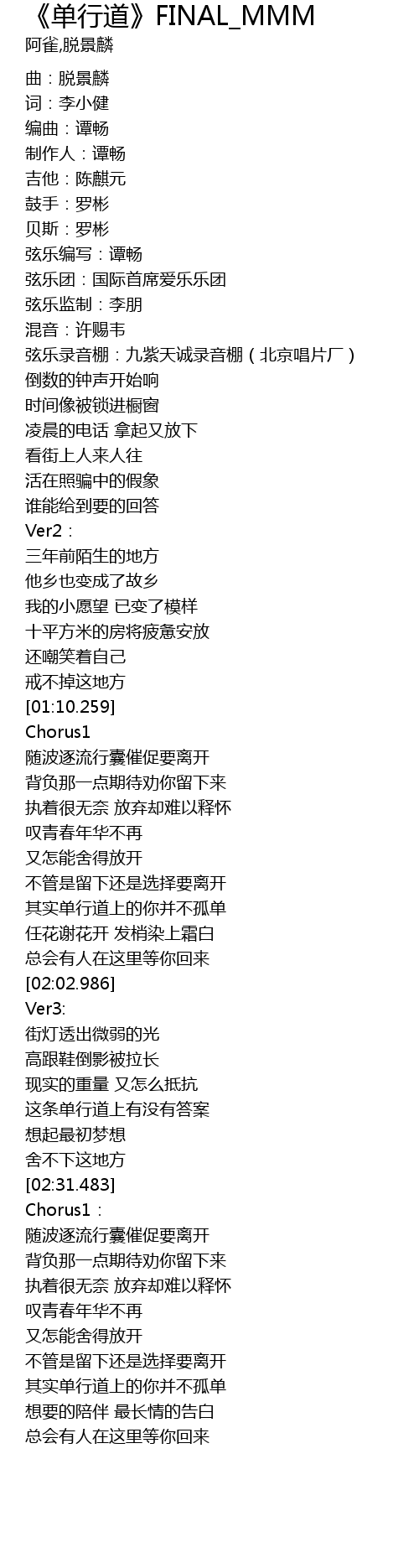 | [01:44.979] | 其实单行道上的你并不孤单 |