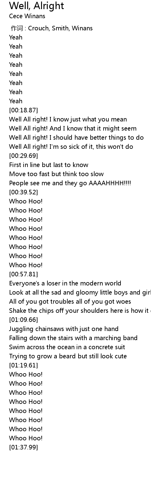 | [00:19.79] | Well All right! I know just what you mean |