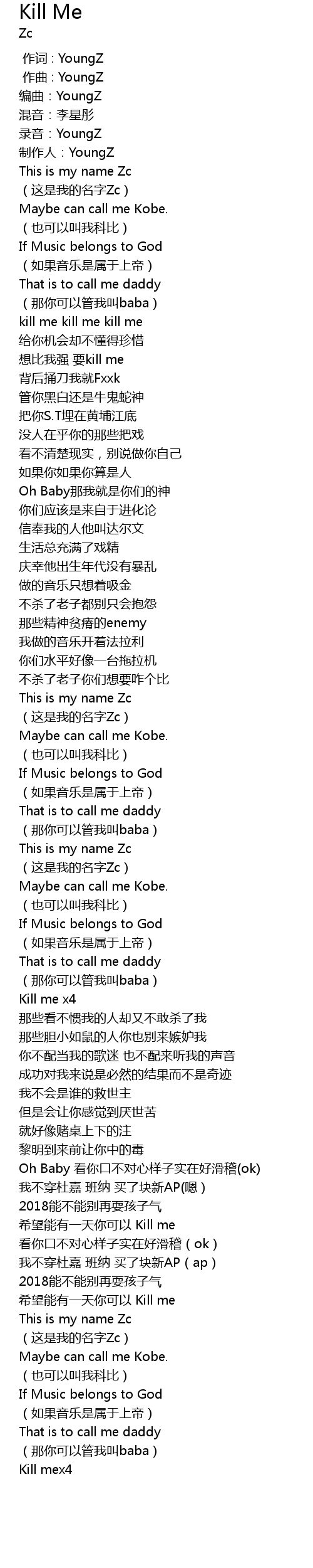 | [01:52.217] | 希望能有一天你可以 Kill me |