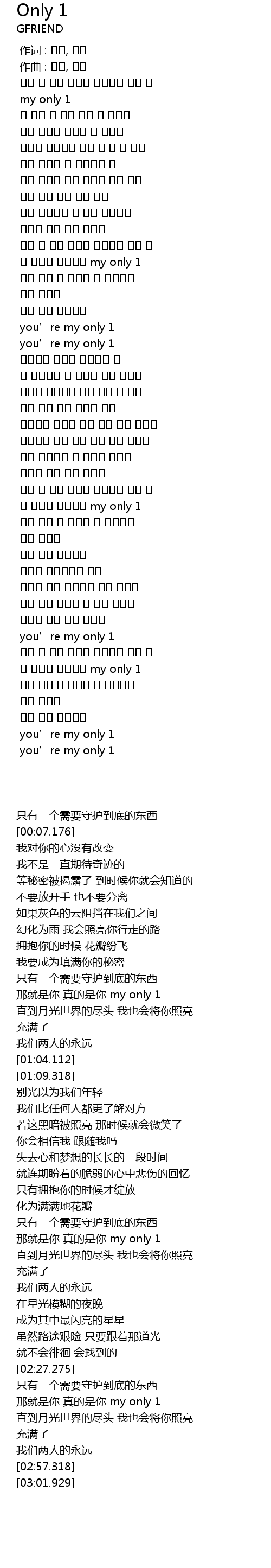 | [02:27.275] | you' re my only 1 |