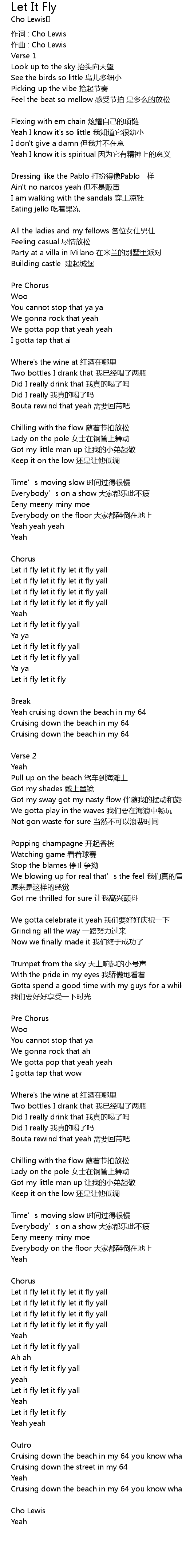 | 作词 : Cho Lewis | |