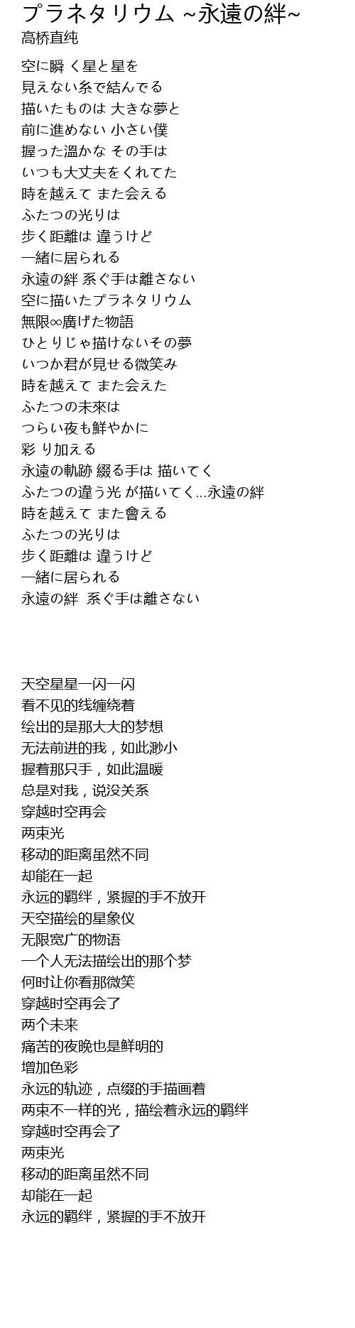 | [03:20.867] | ふたつの違う光 が描いてく…永遠の絆 |