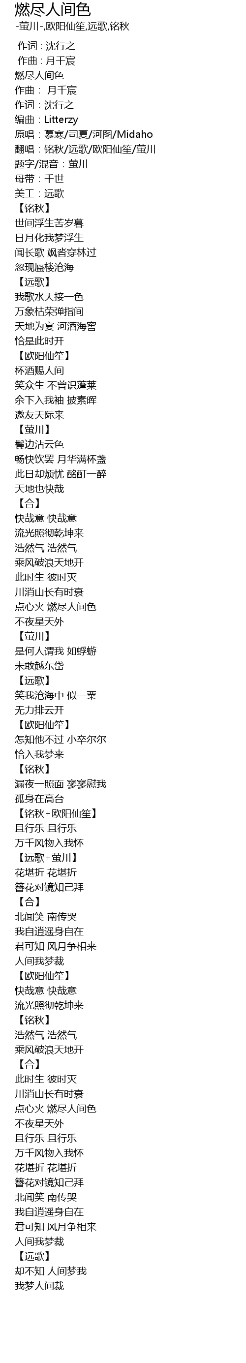 | [00:15.935] | 翻唱:铭秋/远歌/欧阳仙笙/萤川 |