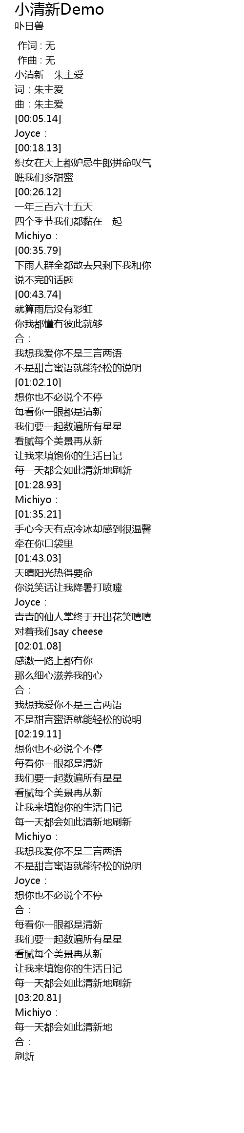| [00:00.47] | 小清新 - 朱主爱 |