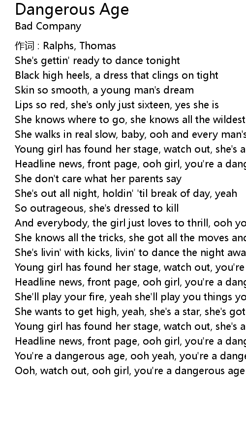 | Ooh, watch out, ooh girl, you' re a dangerous age |
