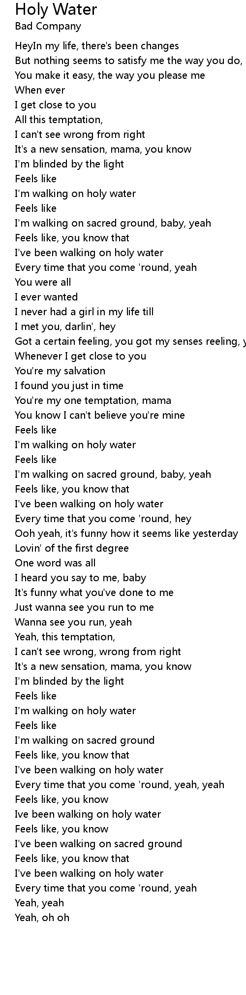 Ive been walking on holy water |