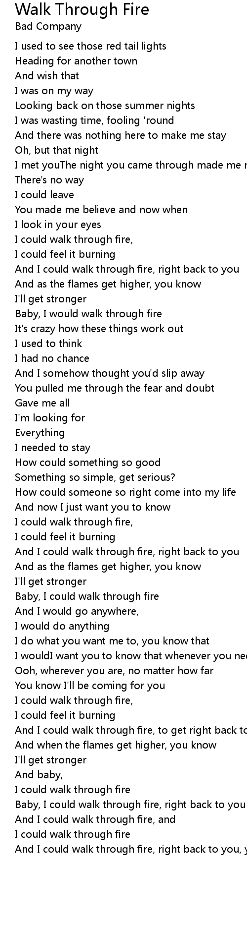 Walk Through Fire Lyrics