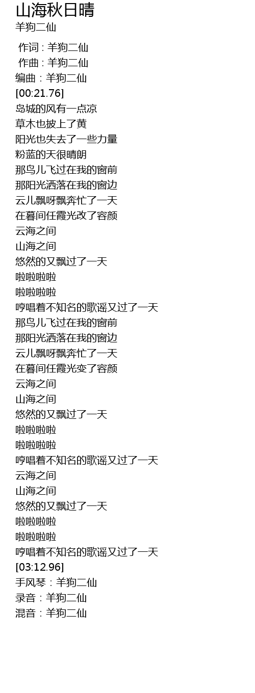 | [03:13.96] | 手风琴:羊狗二仙 |