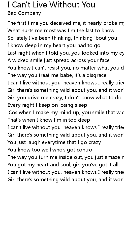 I can't live without you, heaven knows I really tried |