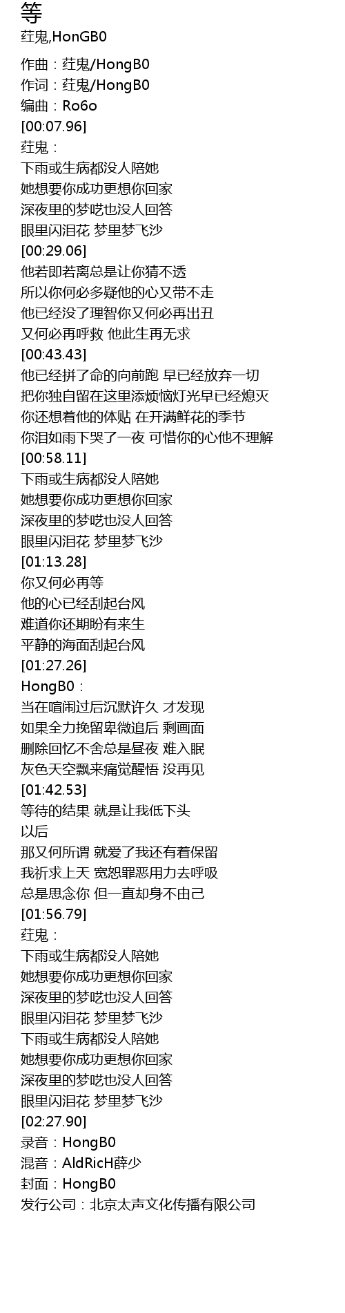 | [02:30.90] | 发行公司:北京太声文化传播有限公司 |