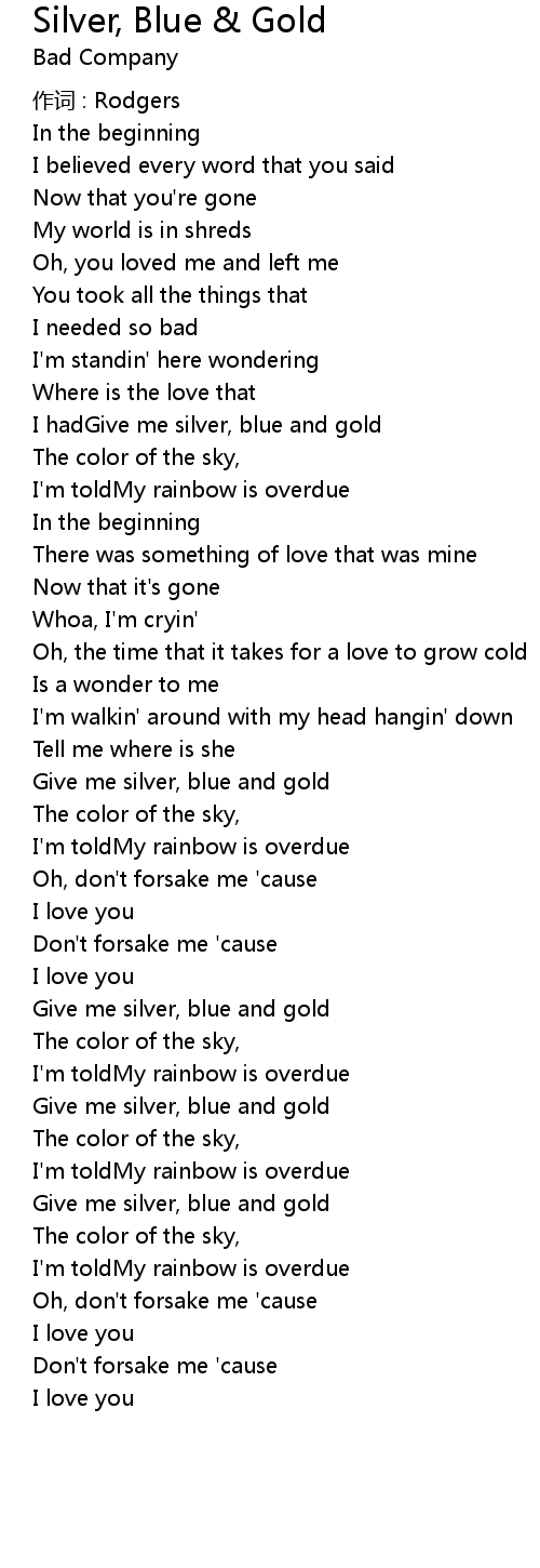 | I hadGive me silver, blue and gold | |