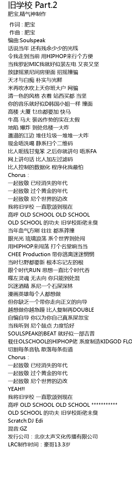 | [02:21.93] | 高呼 OLD SCHOOL OLD SCHOOL *********** |