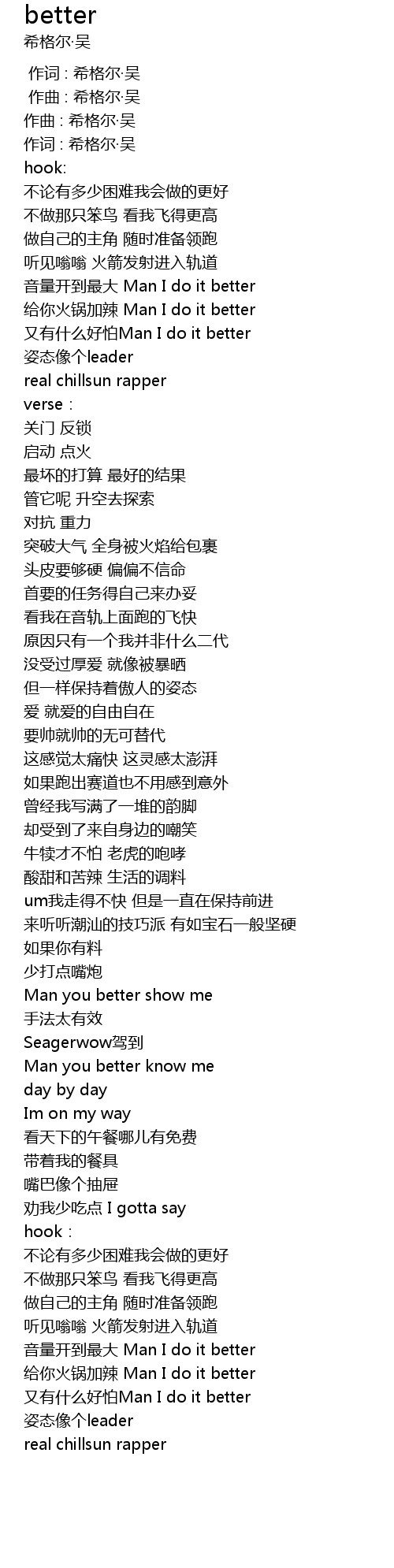 | [00:44.87] | yòu yǒu shén me hǎo pà Man I do it better |