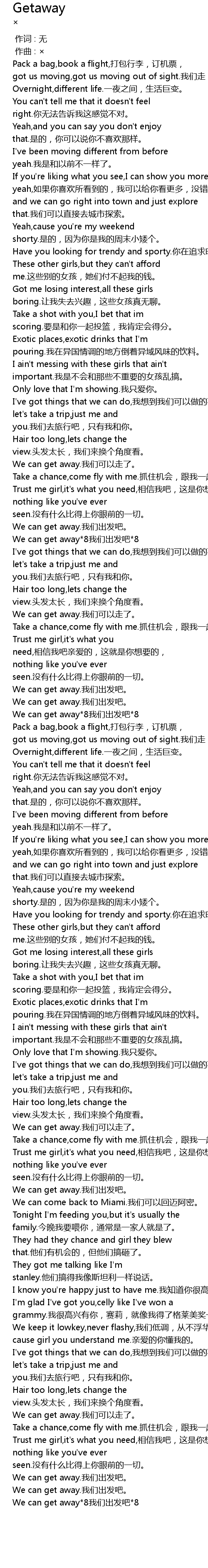 | [00:55.091] | We can get away*8我们出发吧*8 |