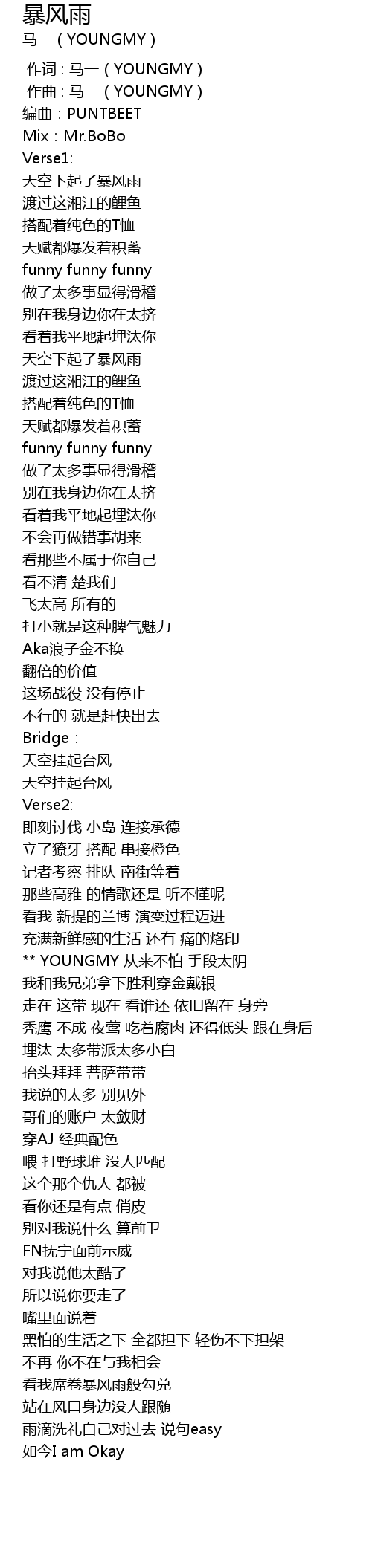 | [00:01.000] | zuo qu : ma yi YOUNGMY |