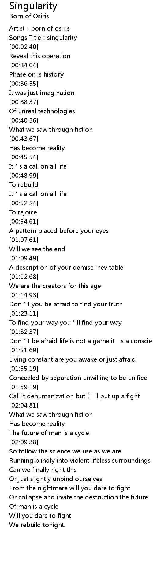 | [00:00.90] | Artist: born of osiris |