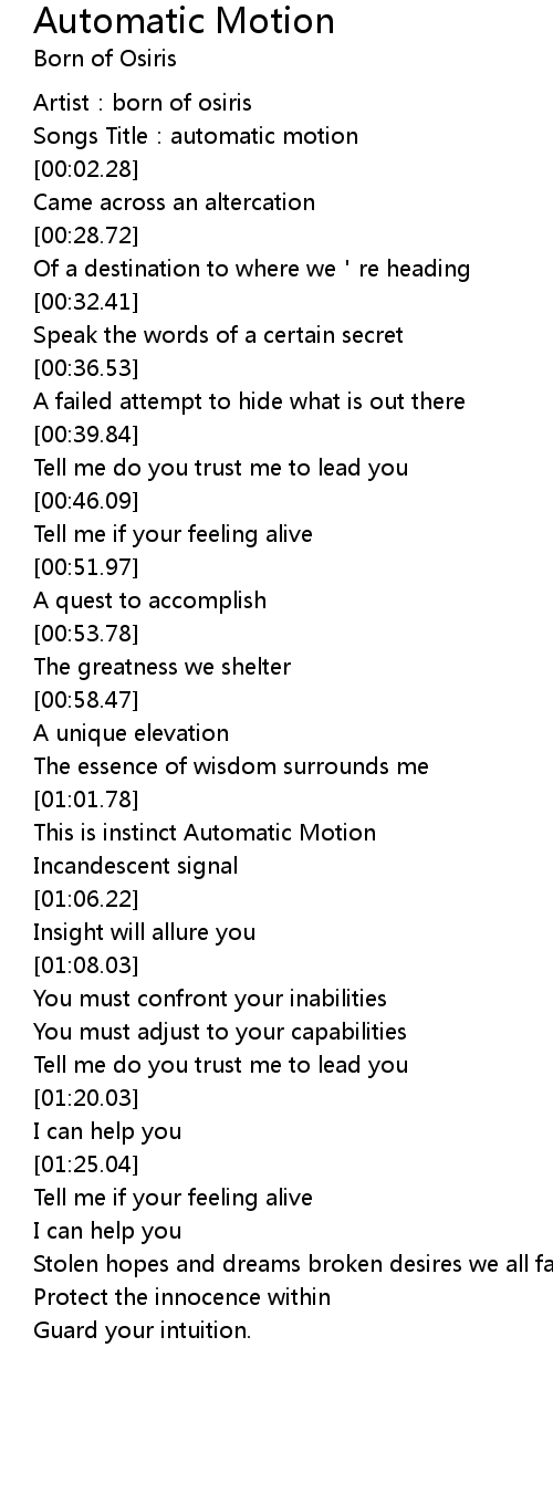 | [01:04.28] | This is instinct Automatic Motion |