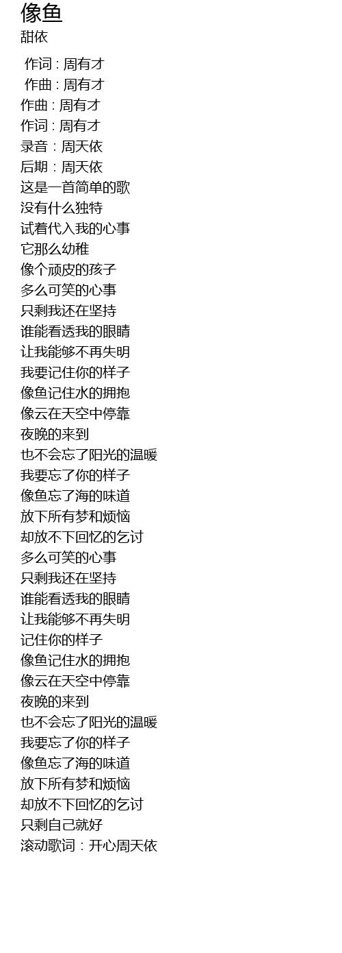 | [04:15.424] | 滚动歌词:开心周天依 |