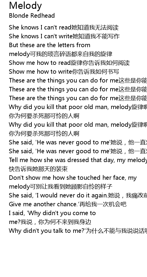 | [02:03.14] | Why did you kill that poor old man, melody旋律啊告诉我 你为何要杀死那可怜的人啊 |