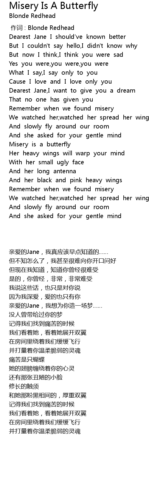 | [00:34.24] | Dearest Jane I should' ve known better |