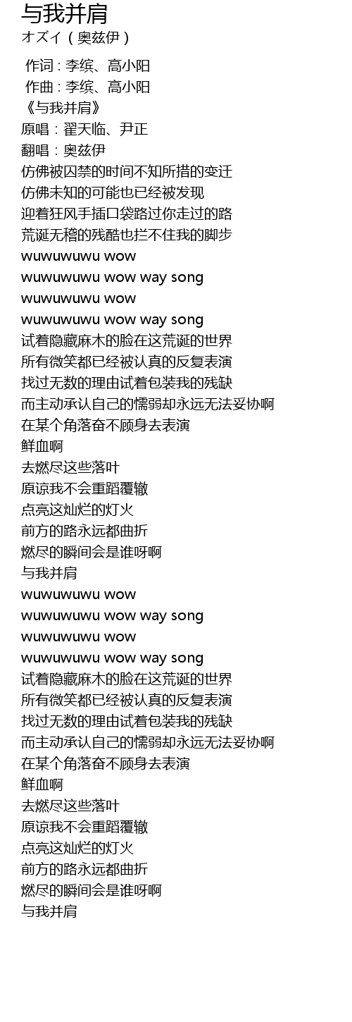 | [00:00.000] | 作词 : 李缤、高小阳 |