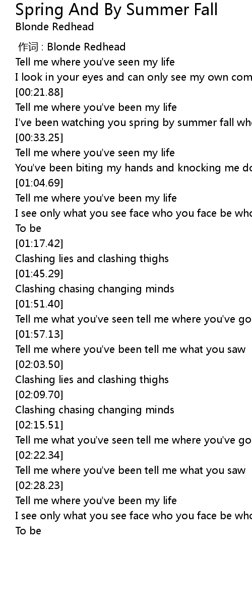 | [00:00.00] | zuò cí : Blonde Redhead |