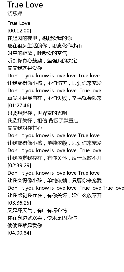 | [03:46.93] | 你在身边就欢喜,快乐是因为你 |