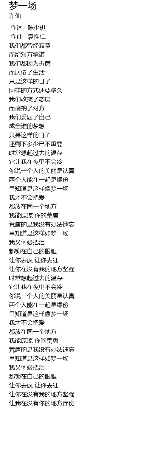 | [03:37.141] | 早知道是这样如梦一场 |