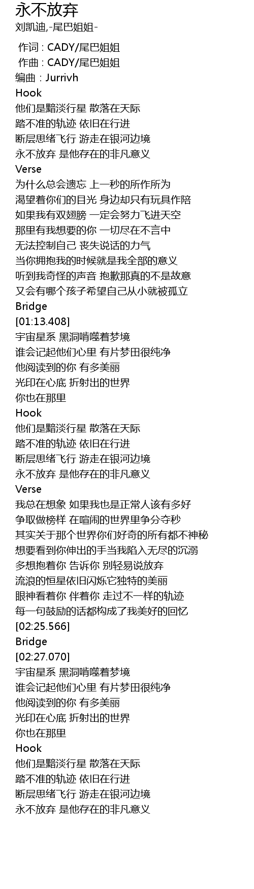 | [00:00.000] | 作词 : CADY/尾巴姐姐 |