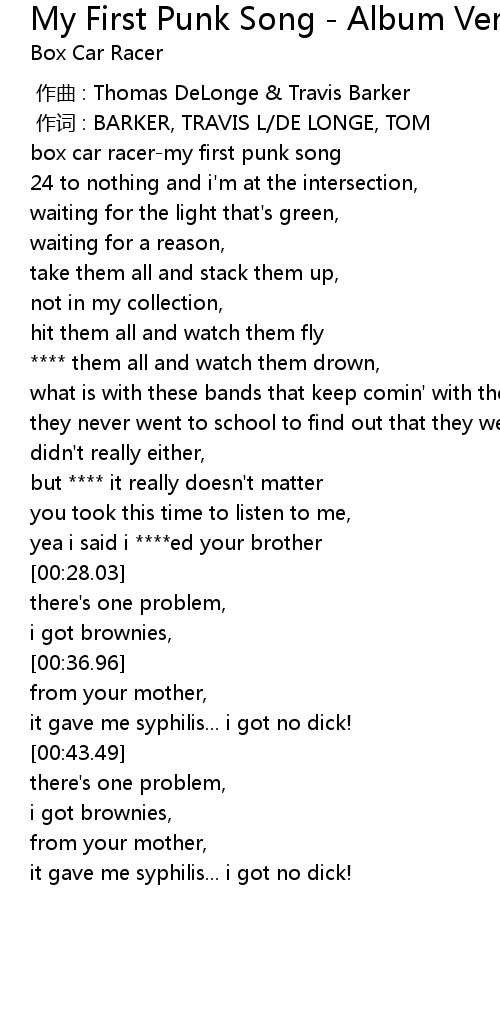 | [00:00.00] | 作曲 : Thomas DeLonge & Travis Barker |