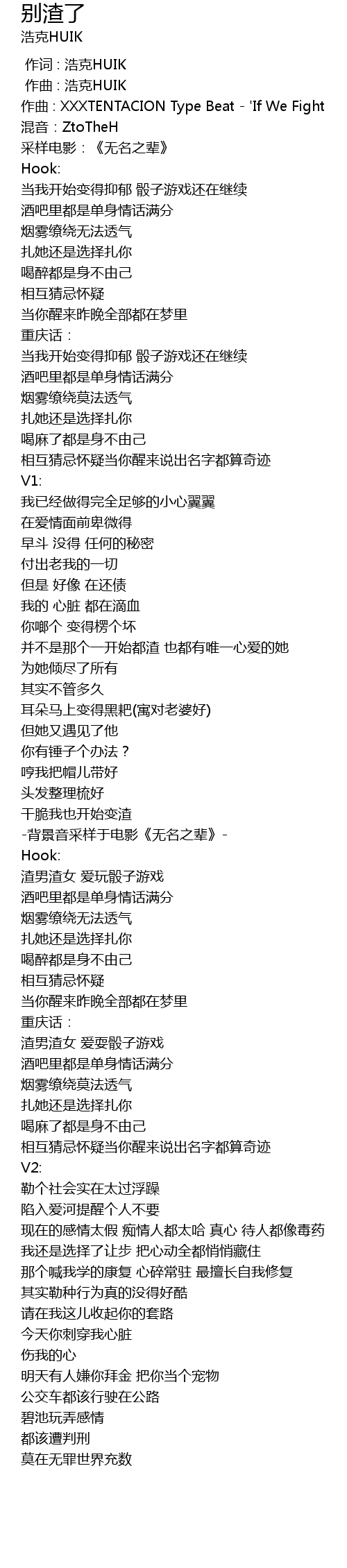 | [00:01.000] | 作曲 : 浩克HUIK |