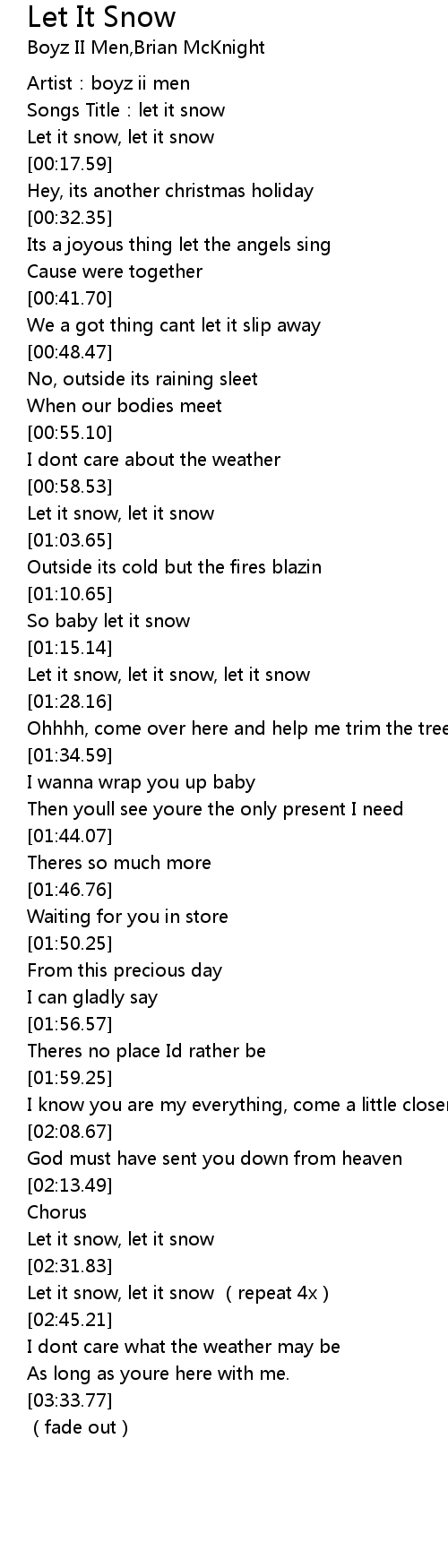 | [02:36.07] | Let it snow, let it snow (repeat 4x) |