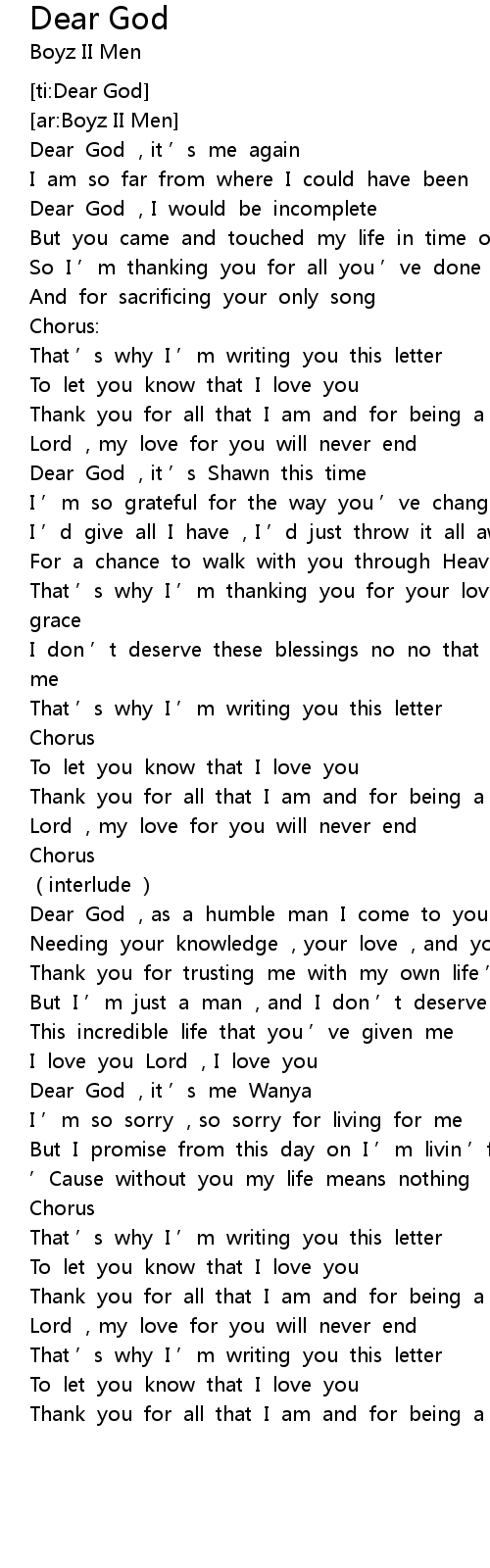 | Song | Dear God |