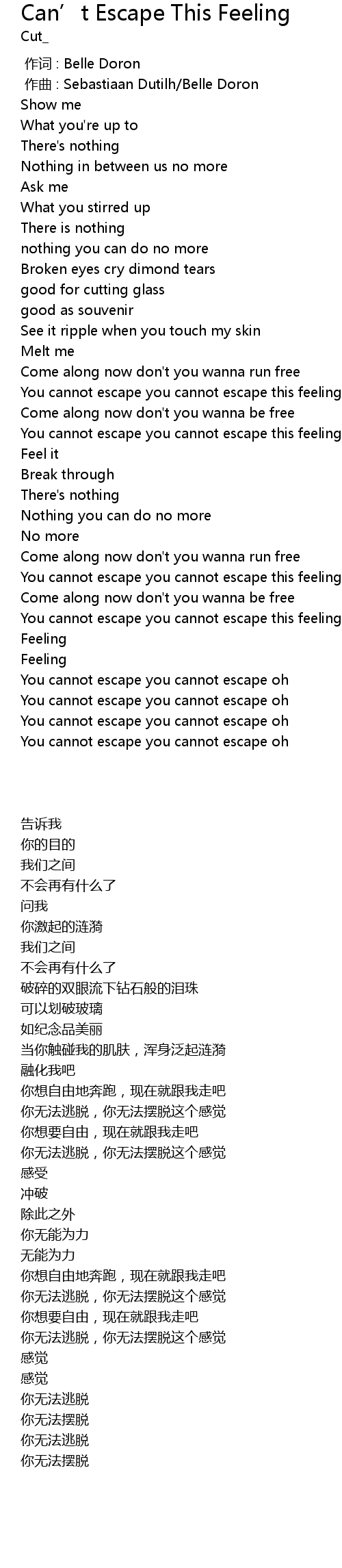 | [01:34.00] | You cannot escape you cannot escape this feeling |