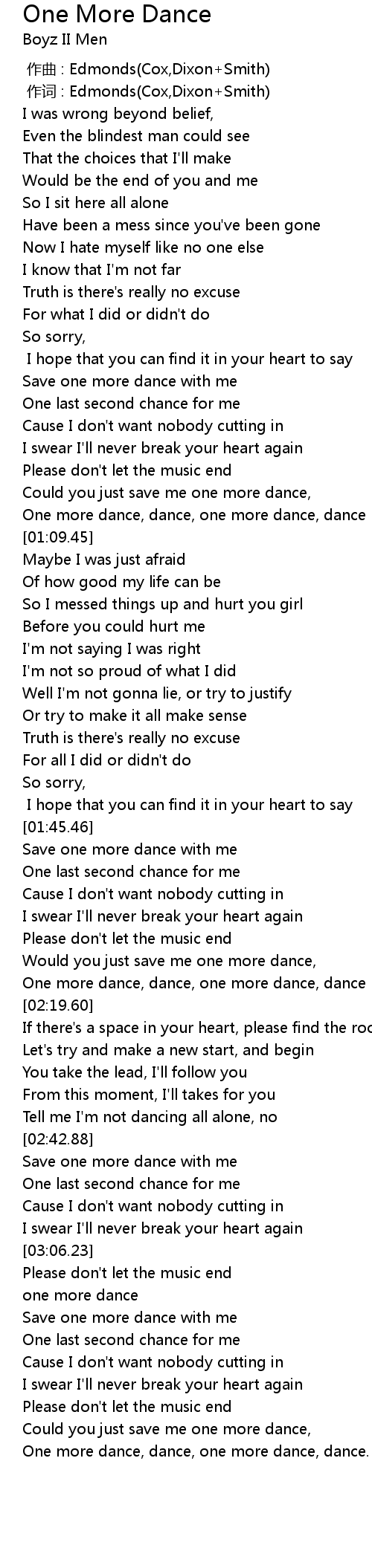 | [03:42.58] | One more dance, dance, one more dance, dance. |