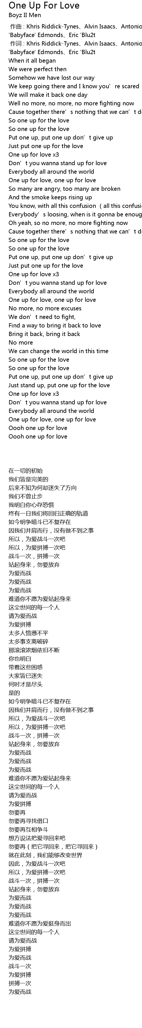 | [00:01.00] | 作词 : Khris Riddick-Tynes、Alvin Isaacs、Antonio Dixon、Kenneth 'Babyface' Edmonds、Eric 'Blu2t |