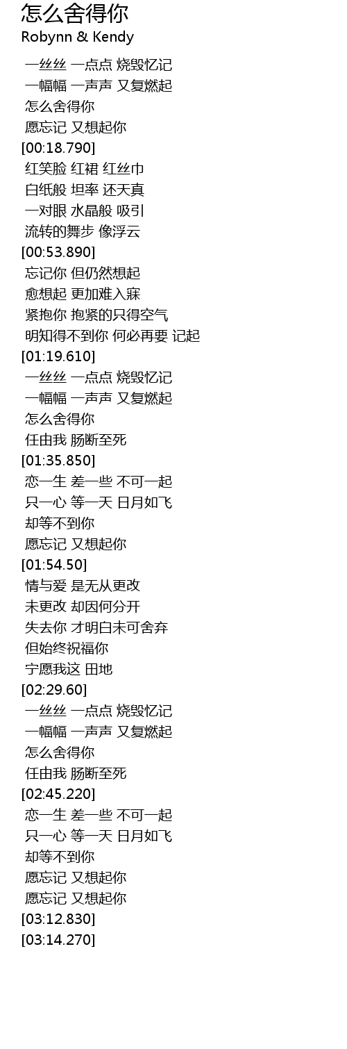| [01:20.270] | 一丝丝 一点点 烧毁忆记 |