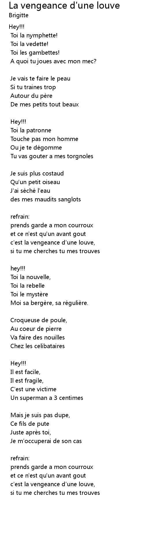 | Song | La vengeance d'une louve |