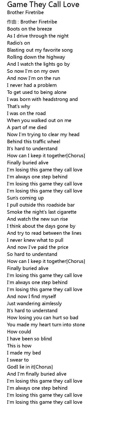 | I'm losing this game they call love |