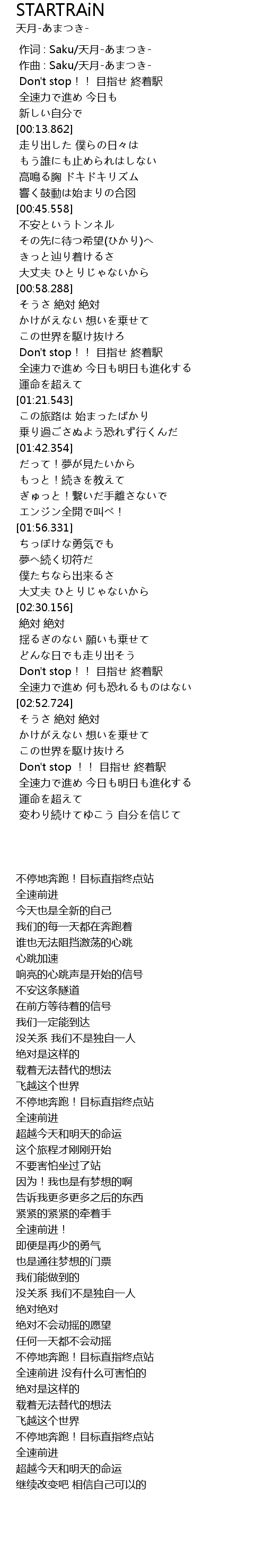 | [03:04.708] | Don't stop !! 目指せ 終着駅 |