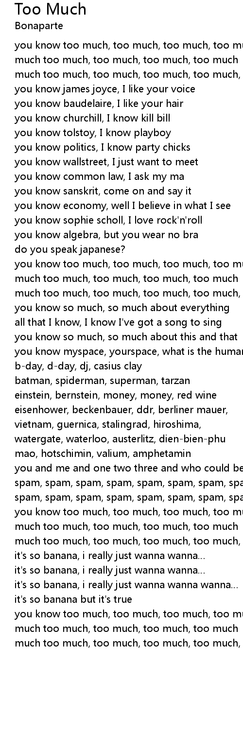 | you know too much, too much, too much, too much, too much | |