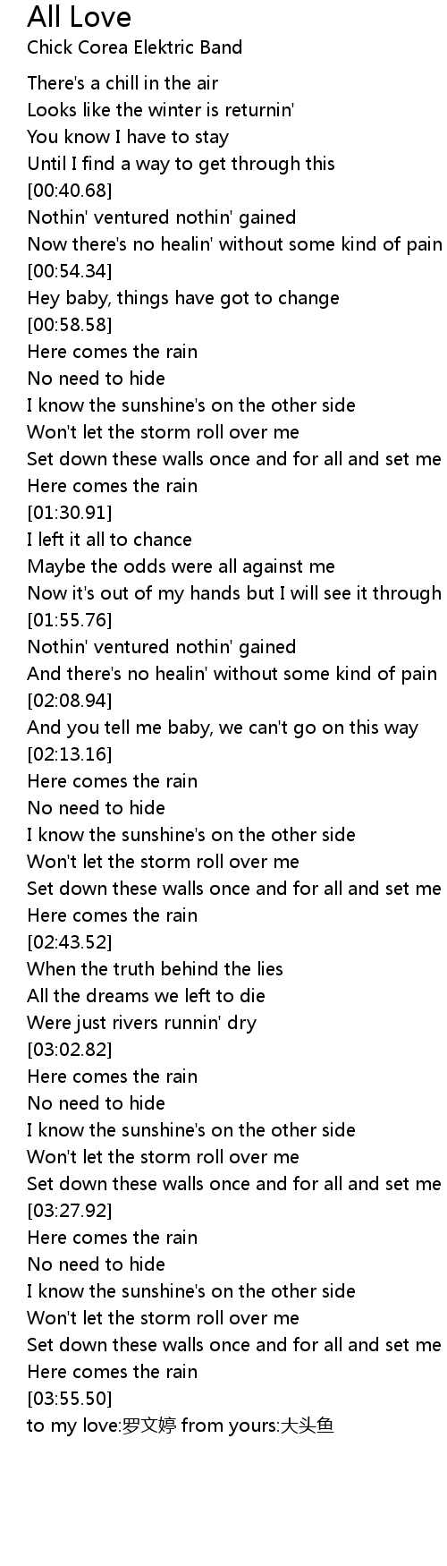 | [03:59.27] | to my love: luó wén tíng from yours: dà tóu yú |