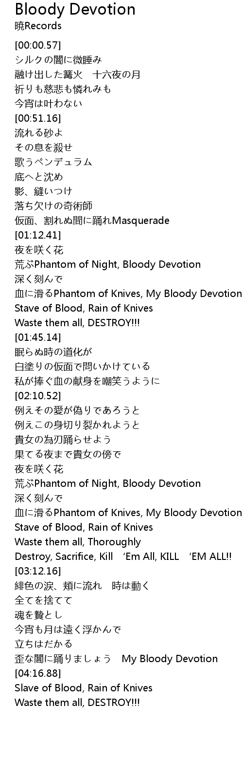 | [04:03.21] | 歪な闇に踊りましょう My Bloody Devotion |