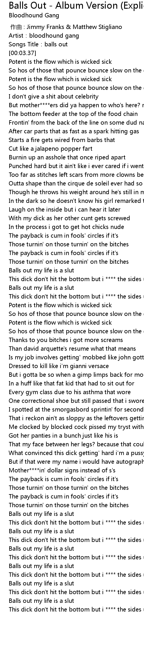 | [03:37.53] | Balls out my life is a slut |