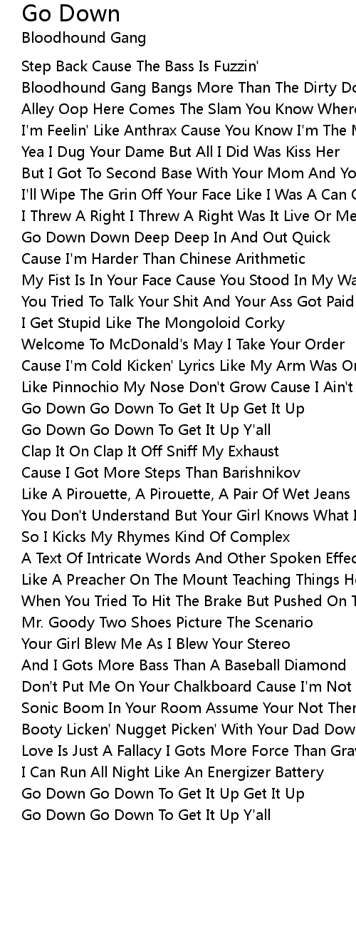 Go Down Go Down To Get It Up Get It Up |