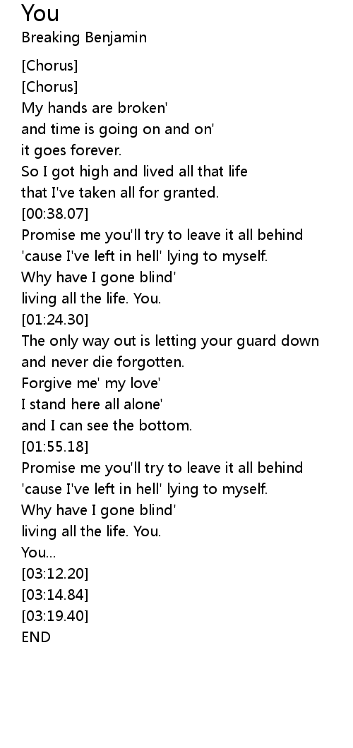[02:08.24] 'cause I've left in hell' lying to myself.